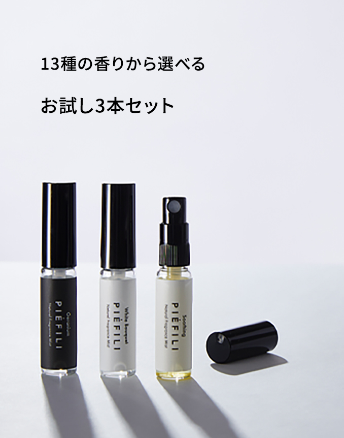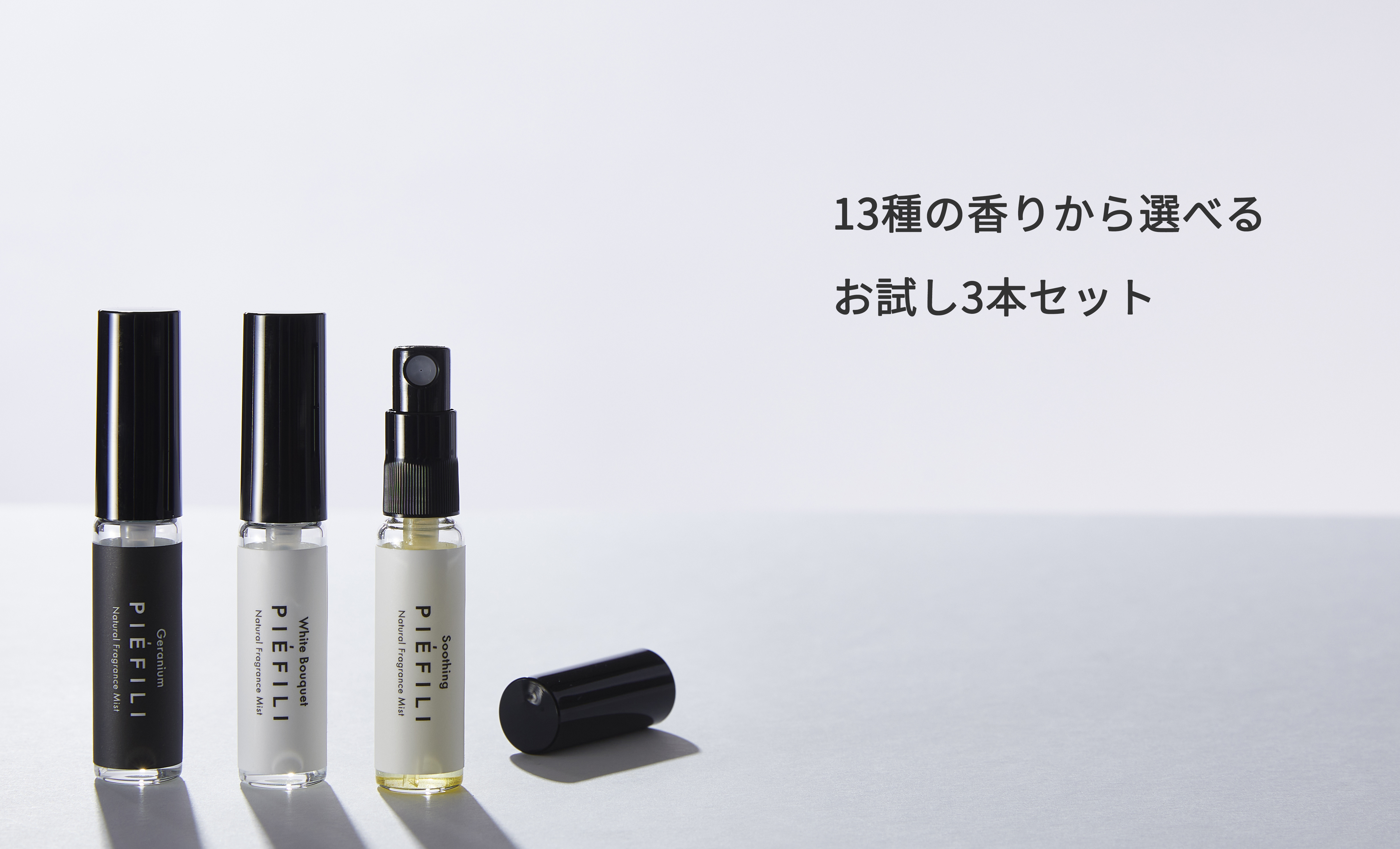 PIÉFILIの13種類の香りの中から、お好きな3つを自由に選べるスプレータイプの特別セット。